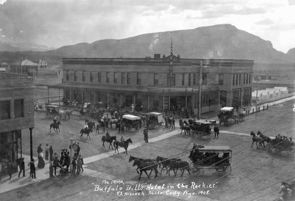 The Irma Hotel is on the registry of National Historic Landmarks. It was opened in 1902 by Buffalo Bill and quickly became the social hub of the small town of Cody, 60 miles from the Eastern Gate of Yellowstone National Park. A focal piece of the saloon contained in the hotel includes a cherry bar back that was gifted to Buffalo Bill by Queen Victoria herself.