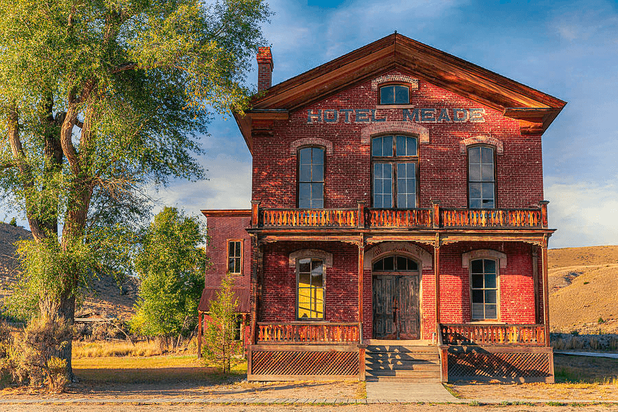 Bannack was first named the capital of the Montana territory before losing the title in the first of many political shifts in the region. The tall brick building that would eventually become the Meade Hotel was one of the first buildings to go up in the boom town with intentions of being a permanent establishment. At the beginning of its life in 1872, it was the courthouse in Bannack. Bannack was named the county seat after Montana became a state, though it would lose that status a few years later to the more established town of Dillon, MT. When the county seat status was lost, the building that had been the courthouse was empty and forgotten before being renovated into a plush hotel in 1891.
