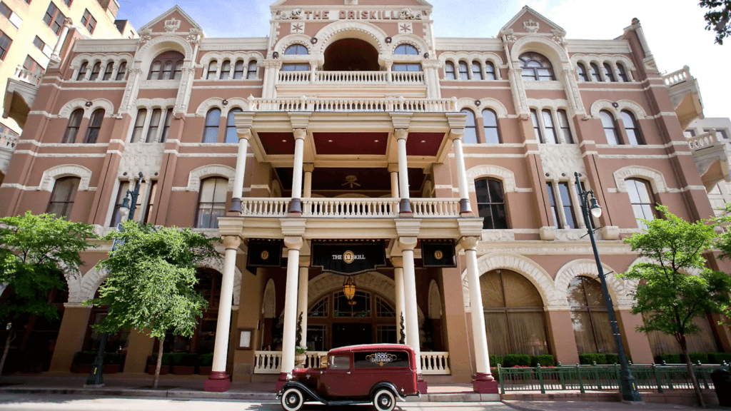 The Driskill Hotel in Austin looks like it’s straight out of a painting from antebellum Texas. Built in 1885, the hotel itself was built with money made on the civil war by a war profiteer, Jesse Driskill, for whom the building was named. Legend says that he made his fortune selling cattle to the confederate army and helping with keeping watch for union brigades. The money made off these ventures funded the hotel, but it would only be open a few months before Driskill found himself financially strained, some say from gambling and philandering.