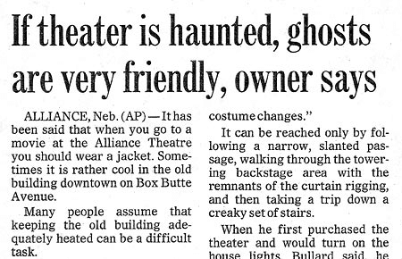 “If the theater is haunted, they’re friendly ghosts,” said the owner of Alliance Theatre in Alliance, Nebraska. The building stands tall in the historic part of the sleepy Nebraska town. Originally constructed in 1903, the building now known as the Alliance was originally built as the Charter Hotel. It’s been renovated many times over the years, including connecting a neighboring building for more theater space. It was renamed the Imperial Theater for a few years, before officially becoming the Alliance Theater in 1937.