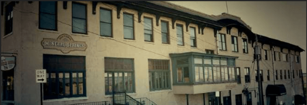 Opened originally when a spring was discovered on the site with a mineral rich aquifer. Built in 1914, the mall is one of the oldest buildings in the small town, with several shops on the first floor and offices in the upper floors, and a few ghosts in the walls. One supposed haunting involved a 17 year old who drowned in the pool, verified by historical records. The young man was named Clarence, and he haunts the pool area with playful pranks and occasional full bodied apparitions in the pool, sometimes wearing a vintage brown suit. Learn more about Clarence and the Mineral Springs Mall here.