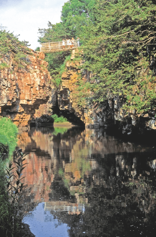 Today, the formation has a metal bridge spanning the rocks, giving a bird’s eye view of the sheet drop to the ravine below and the length of which one would have to jump to clear the gap between the rocks. All this culminates in a legend about a wild west outlaw, the infamous Jesse James. The most famous story about this outdoor marvel is that of Jesse James’ escape from law enforcement after the famous Northfield, Minnesota bank robbery in 1876.