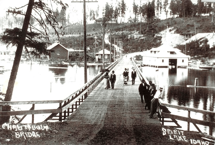 Spirit Lake was originally settled in 1907, growing and adding buildings until 1910, when the town was open for investors. Travelers from Spokane arrived on the train and found themselves in a place they felt was special, settling down on the shores of Spirit Lake and investing in the growing frontier town. A bridge was built over a channel from the lake to ease travel, but later the bridge would be replaced with rock and dirt fill.