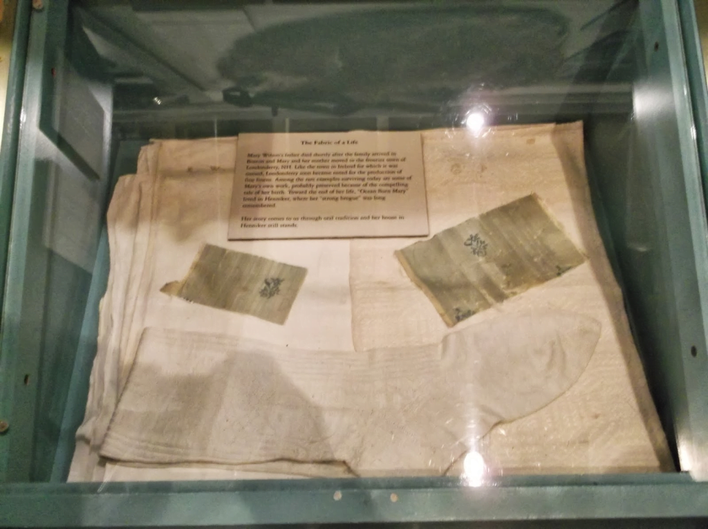 With an exciting start to her life, Ocean-Born Mary would go on to live a relatively average life. She grew up in Londonderry, NH and would eventually marry a young man named James Wallace, with whom she had five children. On her wedding day, of course, she wore the green silk dress with fabric willed to her by her surrogate pirate godfather. Mary was described as a strikingly beautiful and intimidating woman, with bright red hair and haunting green eyes. She stood just over 6 ft tall and had a personality that conveyed her lack of patience for trifling things when more important topics were afoot.