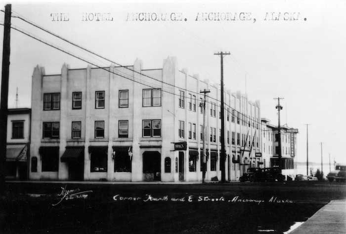The original Anchorage Hotel was built while Anchorage the city was still developing into a small town on the coast of Alaska in 1916. It was originally a wooden structure built out of necessity, but the owner would renovate it just a year later into a luxury hotel to serve those visiting the great northern state. The town of Anchorage grew from a small settlement into a bustling city and by 1936, the hotel had outgrown its original building, so an annex was built next to it to increase the capacity of guests it could accommodate. The two buildings were connected across an alley by a sky bridge. It continued its reputation for luxury, being one of the only places in town where residents could acquire a hot meal served on elegant china with silver utensils.