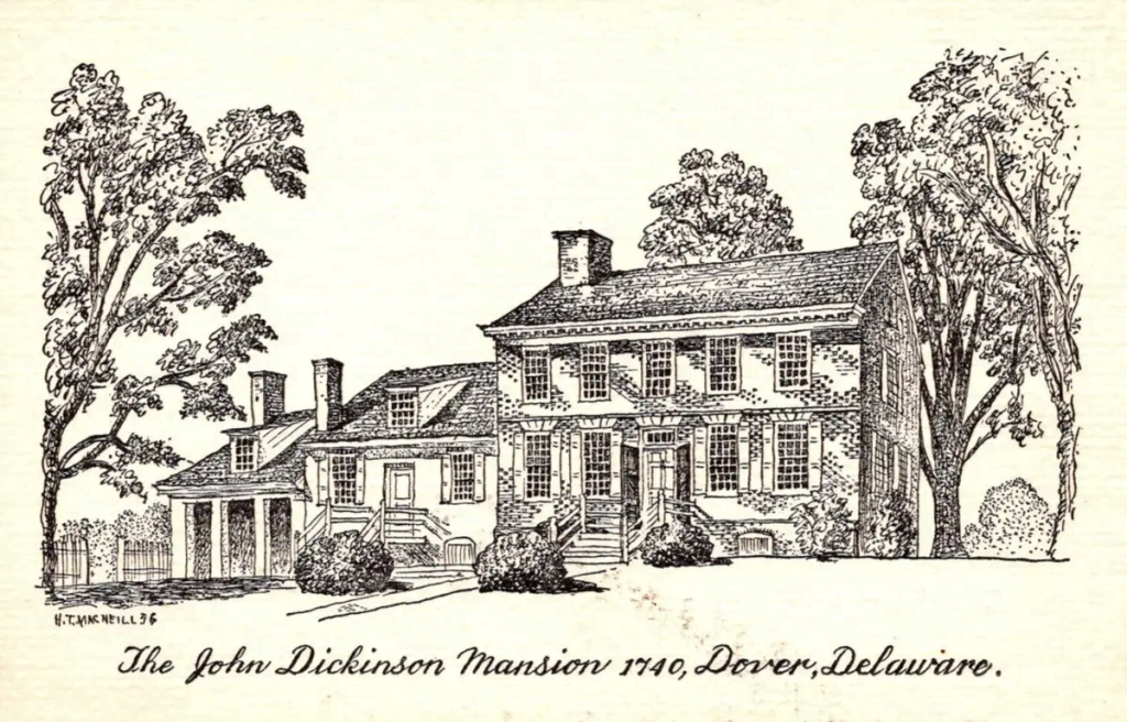 In 1781, his home of Poplar Hall was damaged significantly by loyalists. Later, it would nearly be destroyed by a fire in 1804. Despite these tragedies, the home was rebuilt and still stands today as a National Historic Landmark. It is owned by the State of Delaware and is now run as a museum by the Delaware Division of Historical and Cultural Affairs. It stands today much the way it was when Judge Samuel Dickinson, John’s father, built it in 1739.